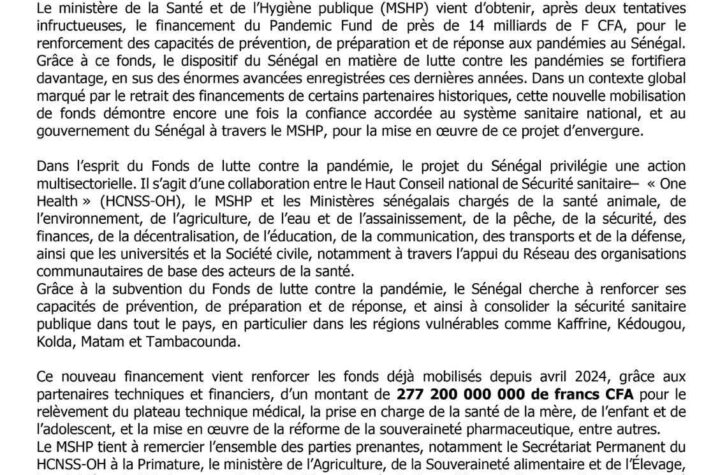 Senegal was awarded US$24.62 million from the Pandemic Fund to strengthen the country’s prevention,...